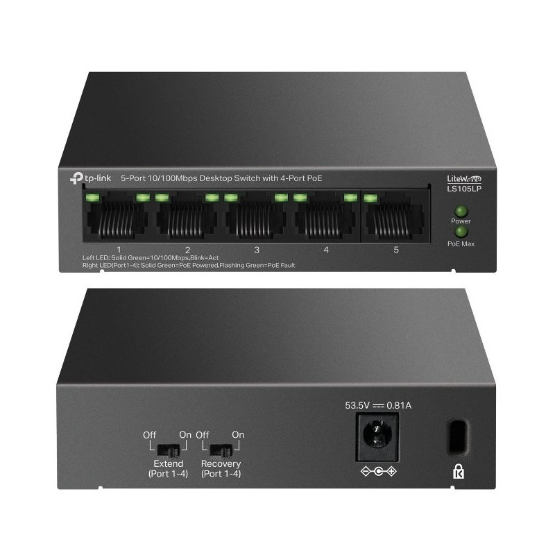 5× 10/100 Mbps portov RJ45 (4× 10/100 Mbps porty PoE 802.3af)