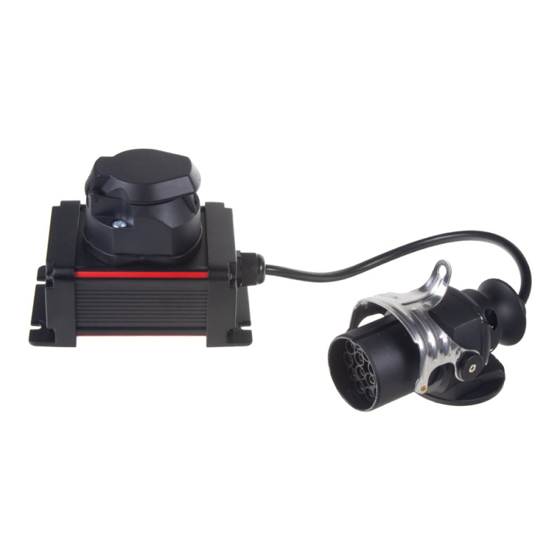Určeno pro 15pin (ISO 12098) zásuvku na vozidle 24 V, 7pin zástrčku (ISO 1724) na přívěsu 12 V.