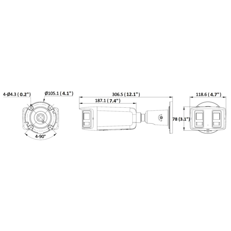 ► 4 Mpx kompaktná IP kamera► Exteriérová► Day/Night► IR prísvit 30 m► 1/2.9" CMOS► Rozlíšenie: 2688 x 1520 px @ 30 fps, 0,008 lx @ F1.6 (Color, 30 IRE), 0,0008 lx @ F1.6 (B/W, 30 IRE)► Objektív: 2,8 mm► Uhol záberu: H: 95°, V: 52°, D: 114°► BLC, HLC, AWB, AGC, EIS, ROI► WDR 120 dB► 3DNR► nteligentné funkcie: SMD Plus, Perimeter Protection, detekcia pohybu, klasifikácia objektov: osoby/vozidla► Kompresia H.265+ / H.265 / H.264+ / H.264 / MJPEG (Sub Stream)► ONVIF kompatibilné► Vstavaný mikrofón► 1x RJ-45 (10/100 Base-T)► Slot na MicroSD kartu max. 256 GB► Napájanie: 12 V DC / PoE (802.3af)► Pracovná teplota: od -40 °C do +60 °C► Kyrtie: IP 67► Rozmery: 166,2 × 70,0 × 70,0 mm