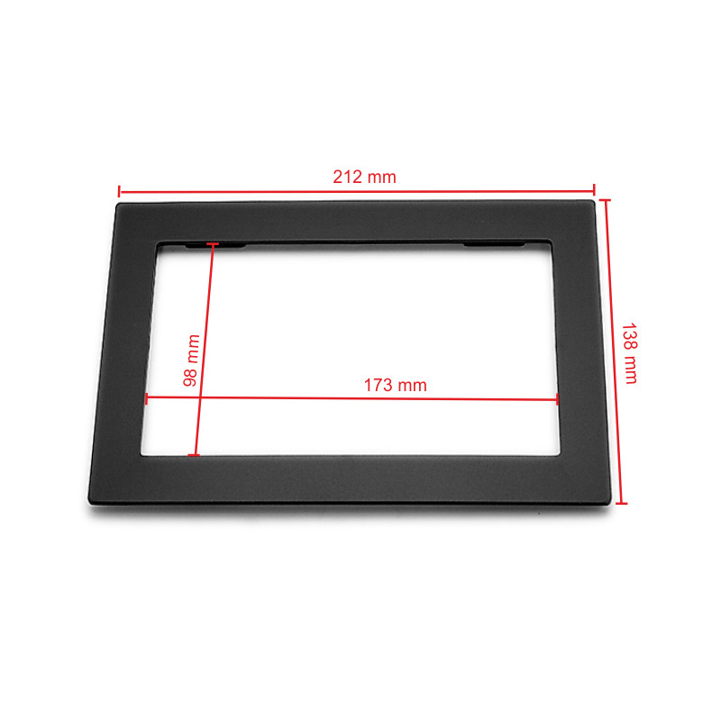 • plechový 2DIN rámeček (vnitřní rozměr: 101 mm x 179,5 mm; vnější rozměry plastového rámečku: 118 mm x 190 mm; do otvoru: 112 mm x 182 mm a hloubky 102 mm)