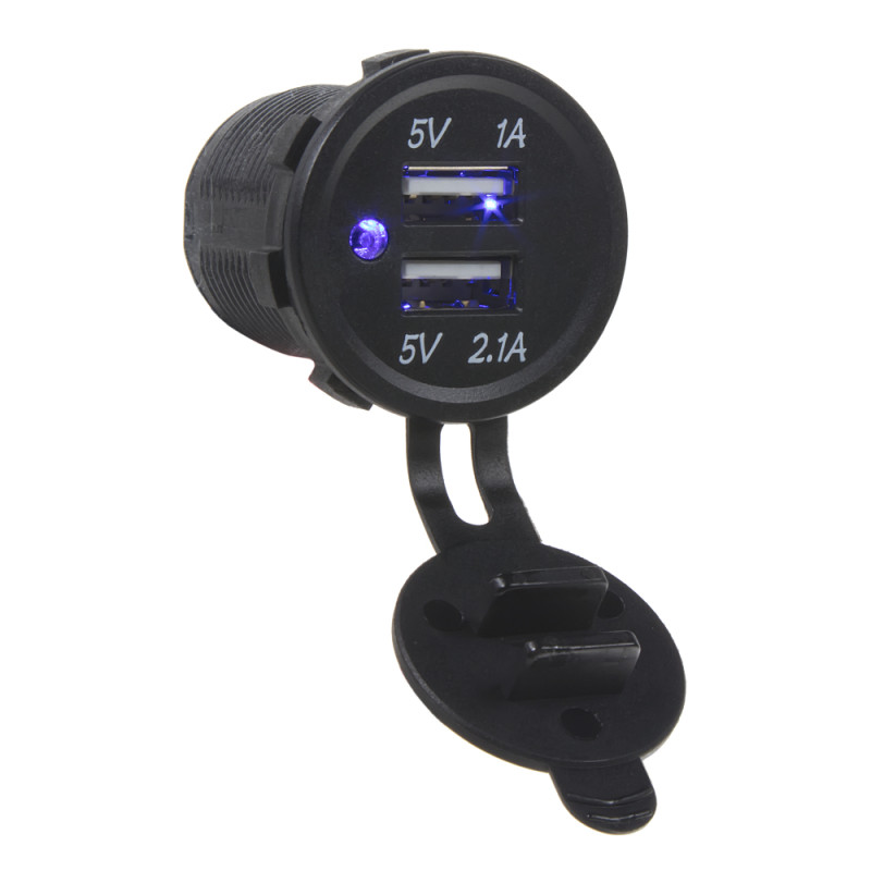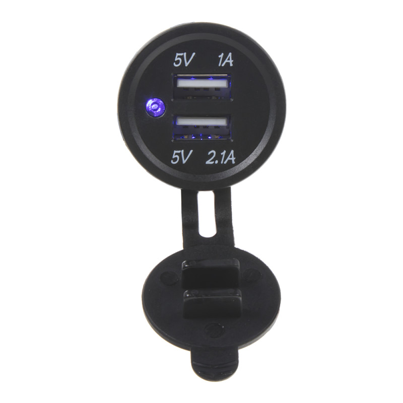 2x USB nabíječka pro montáž do otvoru, modrá LED indikace.