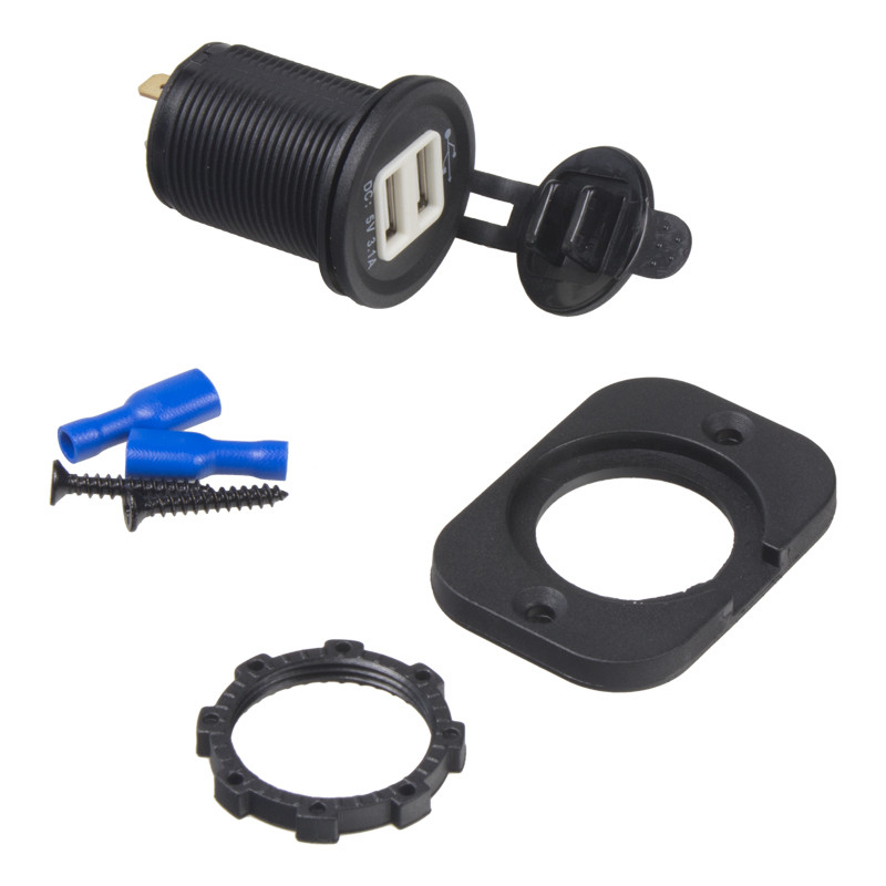 2x USB nabíječka (1x USB, 1x USB-C) do panelu, s krytkou proti prachu a vlhkosti.