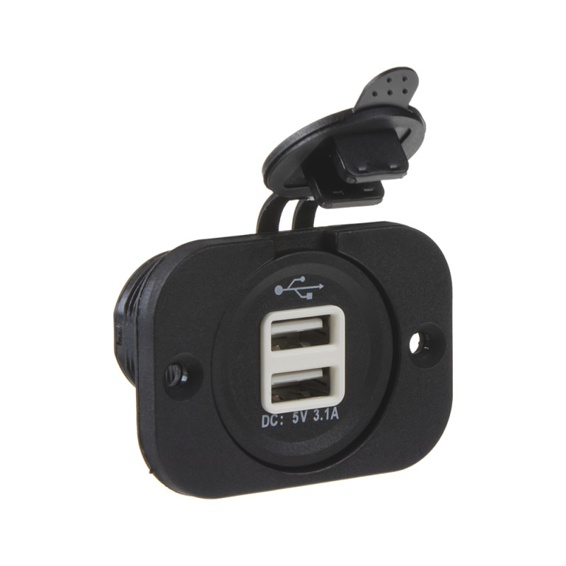 2x USB nabíječka (1x USB, 1x USB-C) do panelu, s krytkou proti prachu a vlhkosti.