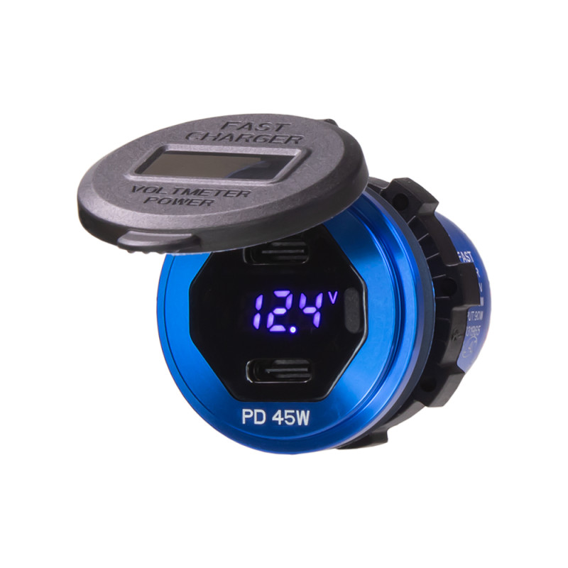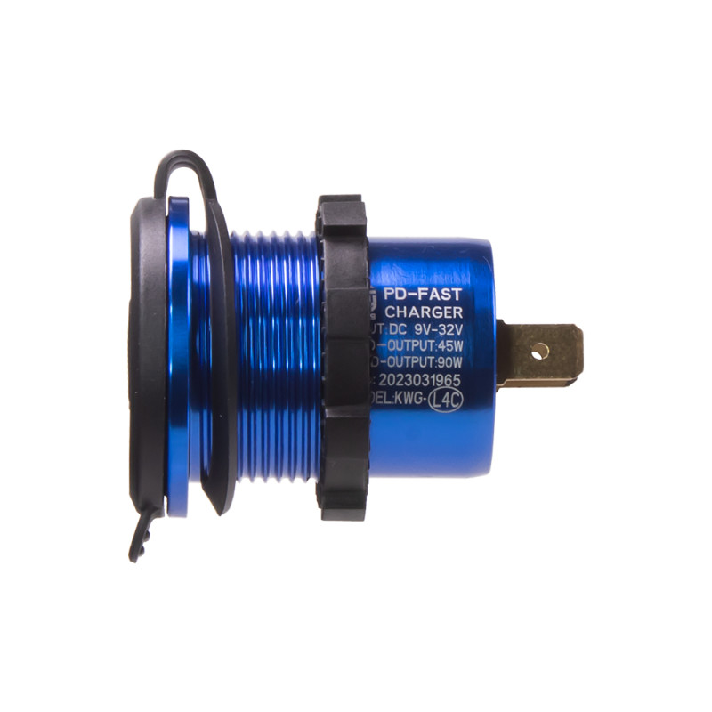 USB nabíječka do panelu, QC + USB-C, s krytkou proti prachu a vlhkosti.