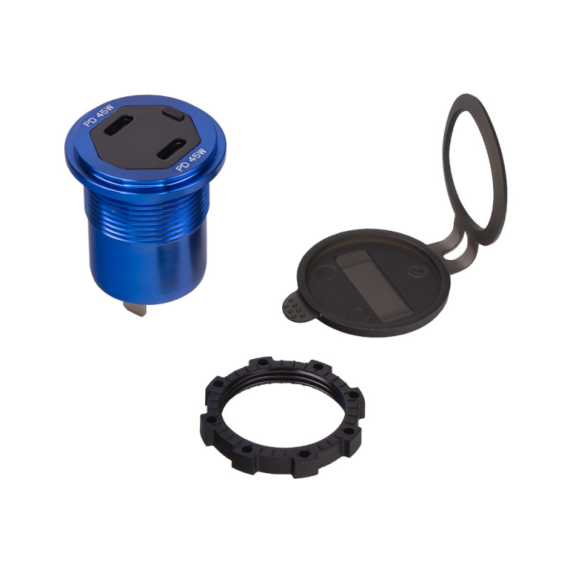 2x USB-C nabíječka do panelu, s krytkou proti prachu a vlhkosti.