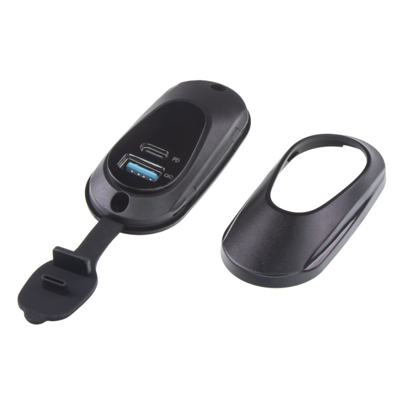USB nabíječka do panelu, QC + USB-C, s krytkou proti prachu a vlhkosti.