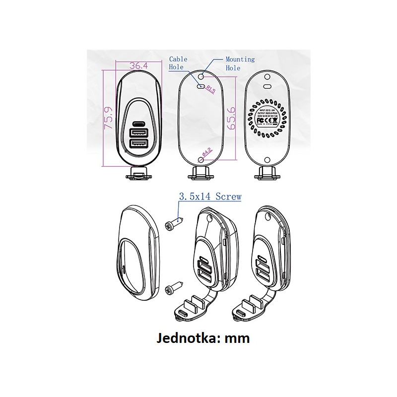 • výstup: USB 5 V - 12V / max. 36 W