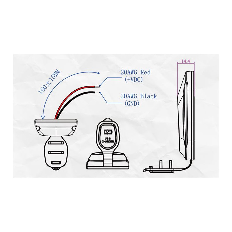 2x USB nabíječka (1x USB, 1x USB-C) do panelu, s krytkou proti prachu a vlhkosti, modré podsvícení.