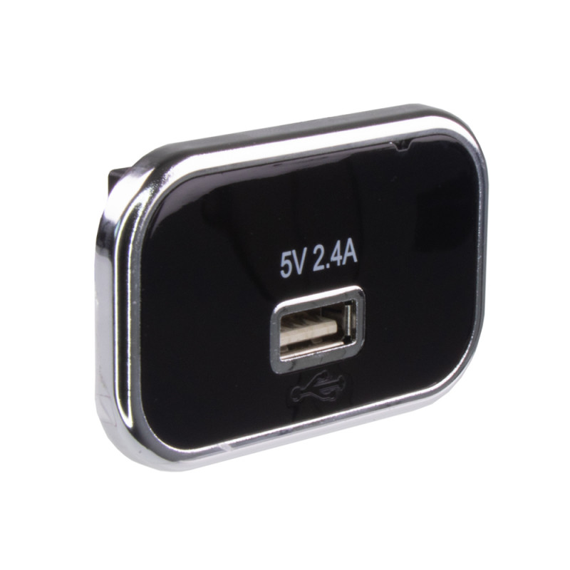 USB nabíječka pro montáž do otvoru, modrá LED indikace.