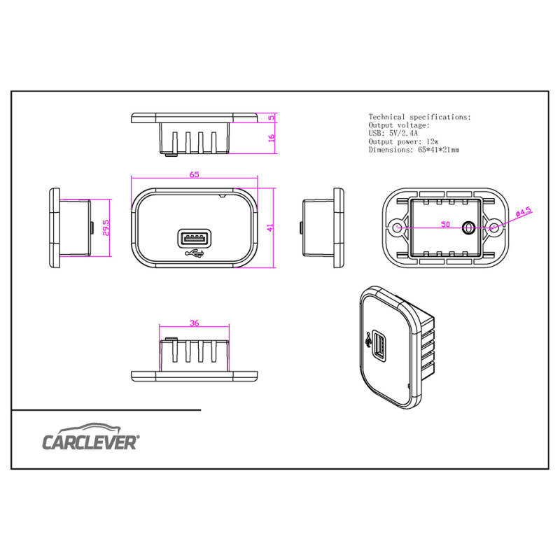 2x USB zásuvka v montážním panelu.