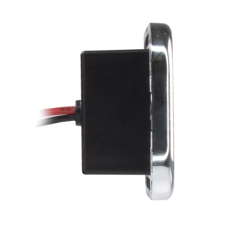 2x USB nabíječka s voltmetrem do panelu, s krytkou proti prachu a vlhkosti, modrý LED displej, dotykový vypínač.