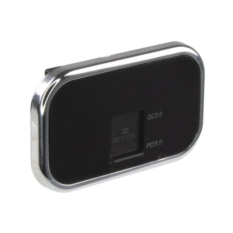 Dvojitá zásuvka do panelu 2x USB-A (3,1 A) + 1x USB-A (QC3.0) + 1x USB-C (PD) nabíječka voděodolná.