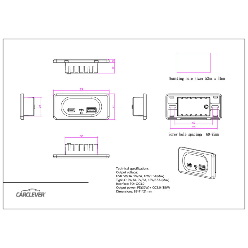 • podpora protokolu: DCP (BC1.2, Apple, Samsung), Qualcomm Quick Charge QC2.0 / QC3.0, PD2.0 / PD3.0(PPS), Huawei Fast Charge Protocol FCP, Samsung Fast Charge Protocol AFC