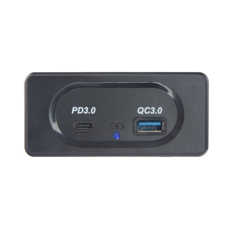 USB nabíječka do panelu, QC3.0 + USB-C, s krytkou proti prachu a vlhkosti.