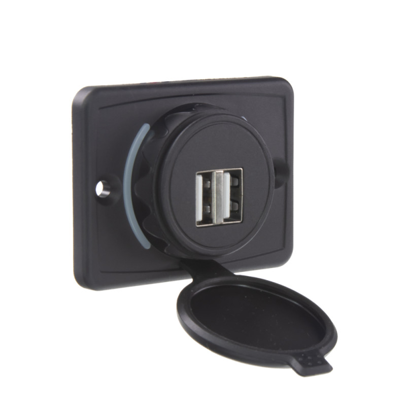 2x USB nabíječka (1x USB, 1x USB-C) do panelu, s krytkou proti prachu a vlhkosti.