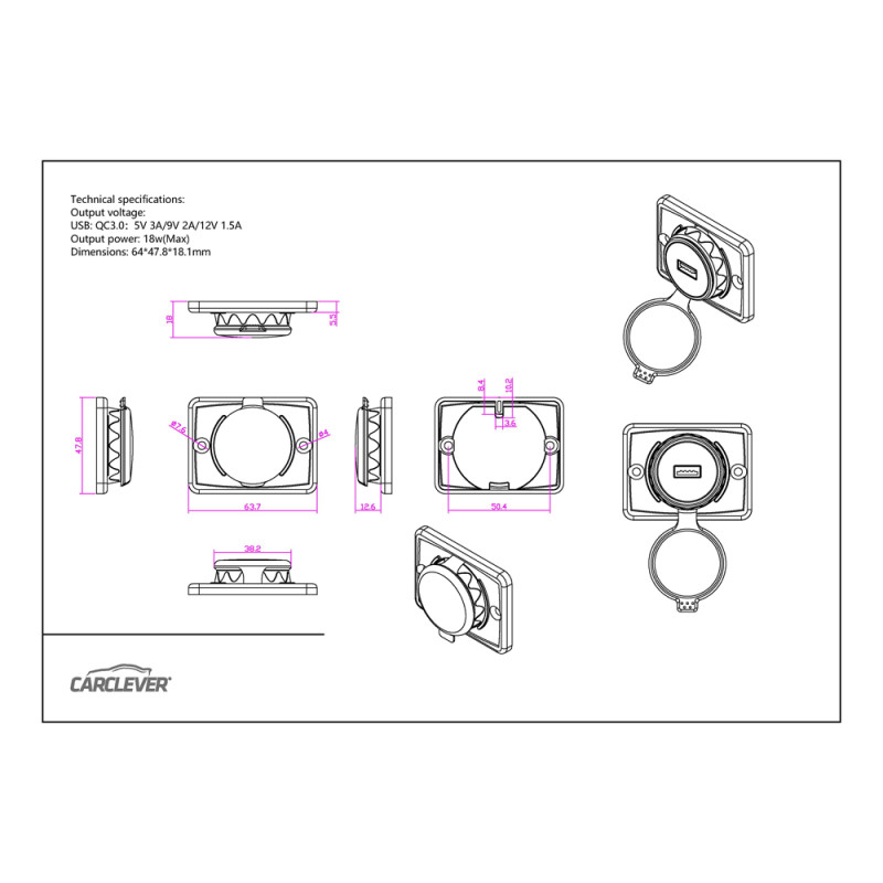 • výstup USB QC 3.0: 5 V / 3 A, 9 V / 2 A, 12 V / 1,5 A (max. 18 W)