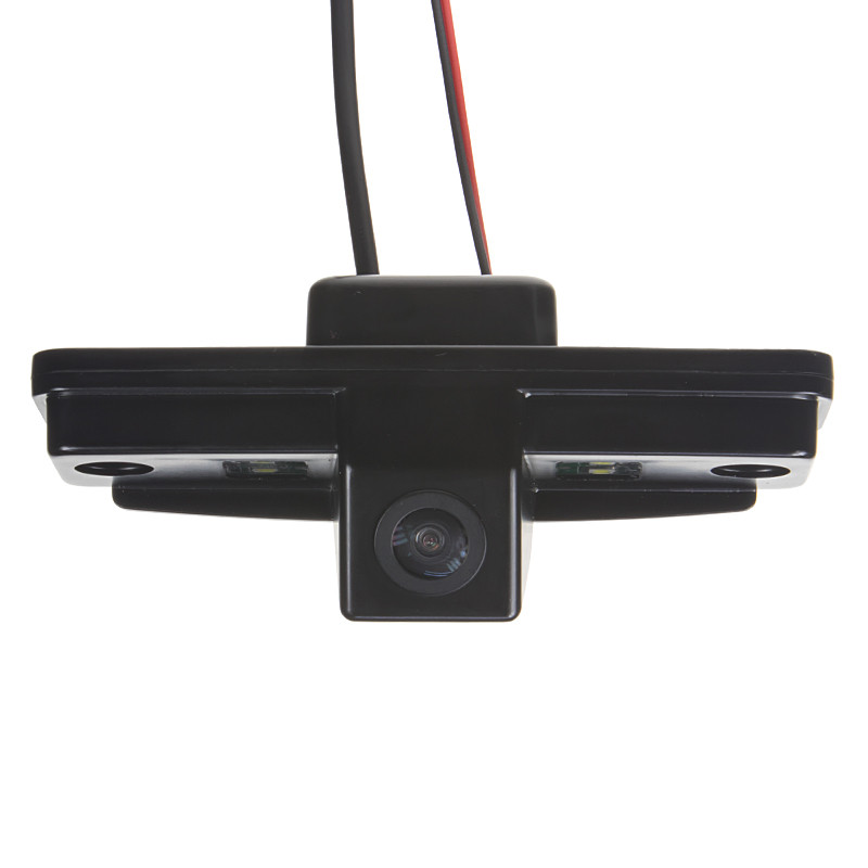 Farebná kamera s LED osvetlením pre ŠPZ pre ľahšie cúvanie s možnosťou pripojenia k monitoru vybavenému RCA vstupom► Je určená pre zabudovanie do osvetlenie nad zadnú registračnú značku ŠKODA Octavia II (sedan aj combi od 2009).► Kamera zároveň zobrazuje pomocné trajektórie pre parkovanie ► Snímací uhol: 135° ► TV systém: PAL/NTSC► Min. osvetlenie: 0,5 LUX ► Snímací čip: SOC ► Rozlíšenie: 500 TV riadkov ► Výstupný obraz: zrkadlový► Vodotesné krytie: IP 67 ► Napájacie napätie: 12 V / 100 mA ► Prevádzková teplota: od - 40 C do + 80 C► Dĺžka predlžovacieho CINCH kábla: 5 m ► Automatické vyváženie bielej, AGC a BLC ► Pripojovacie konektory: video výstup - CINCH samica, napájanie - voľné vodiče ► Rozteč skrutiek lampičky 62 mm ► Rozmery 87 x 26,5 mm