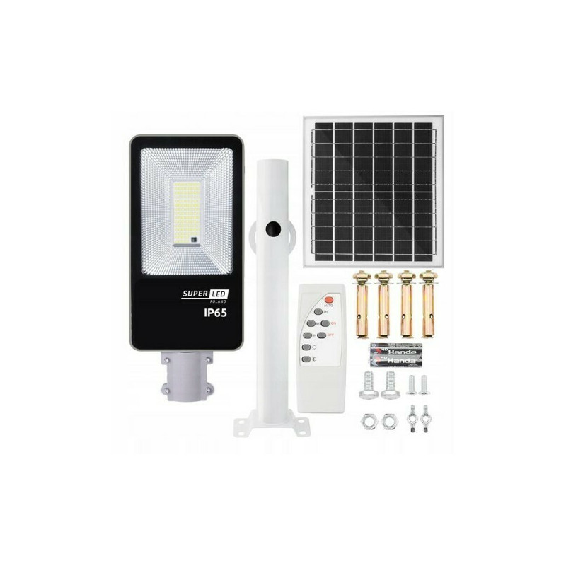 ýrobca: SuperLEDTyp: solárna pouličná lampaPríkon: 100WPočet LED diód: 208 SMD 5730Farba svetla: studená biela (6500K)Svetelný tok: 1000 LmOsvetlená plocha: 80 m2Kapacita batérie: 15000 mAhDoba úplného nabitia lampy: 8 hodín (leto) - 24 hodín (zima)Doba svietenia lampy (zo 100% batérie): až 36 hodínSenzor súmraku: ánoŠtandard tesnosti: IP65Prevádzková teplota: od -30°C do 60°CMateriál: kovové puzdro, tvrdené skloDiaľkové ovládanie: áno - diaľkové ovládanieNapájanie diaľkového ovládača: 2 x AAA batérie (sú súčasťou balenia