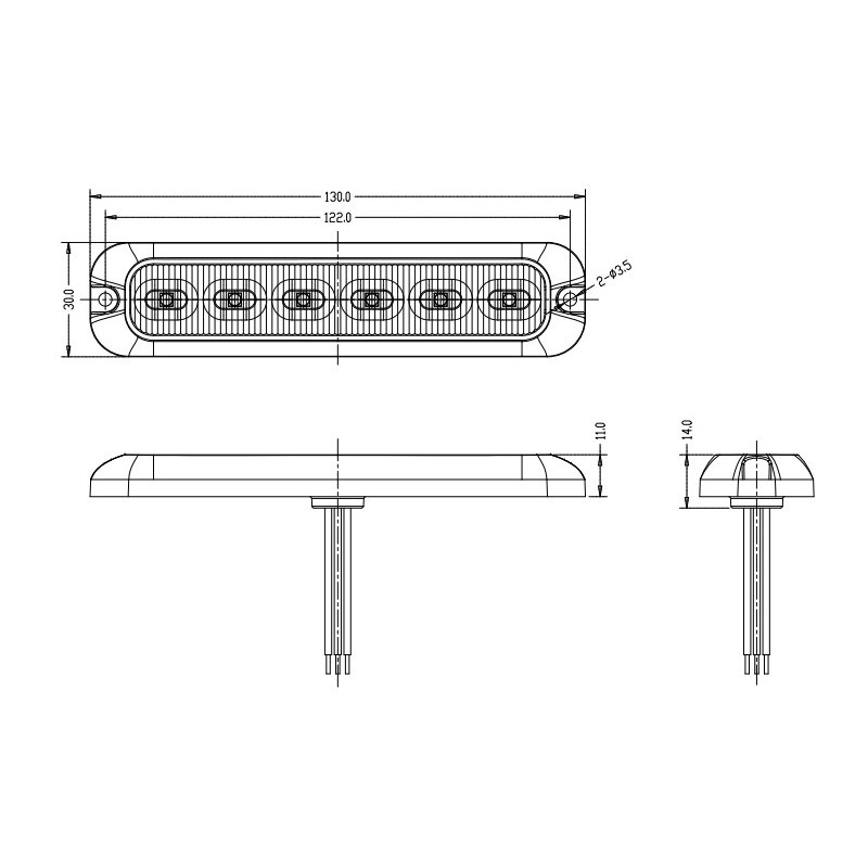 • 6x vysoce výkonné oranžové LED diody 2 W (výstražné světlo)
