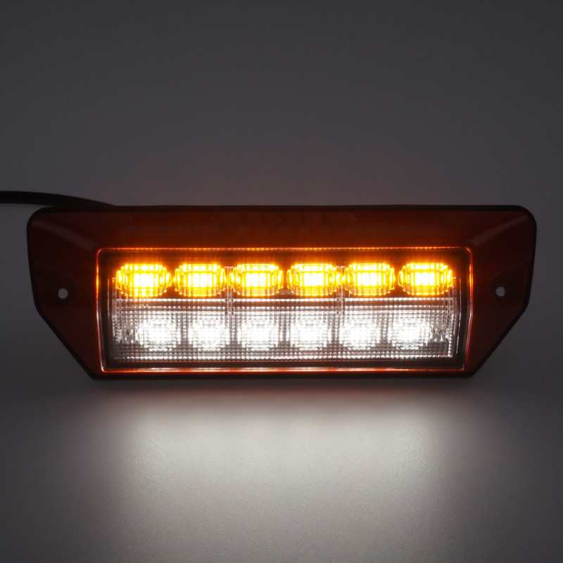 Přídavné oranžové výstražné LED světlo s bilým pracovním světlem pro externí povrchovou montáž.