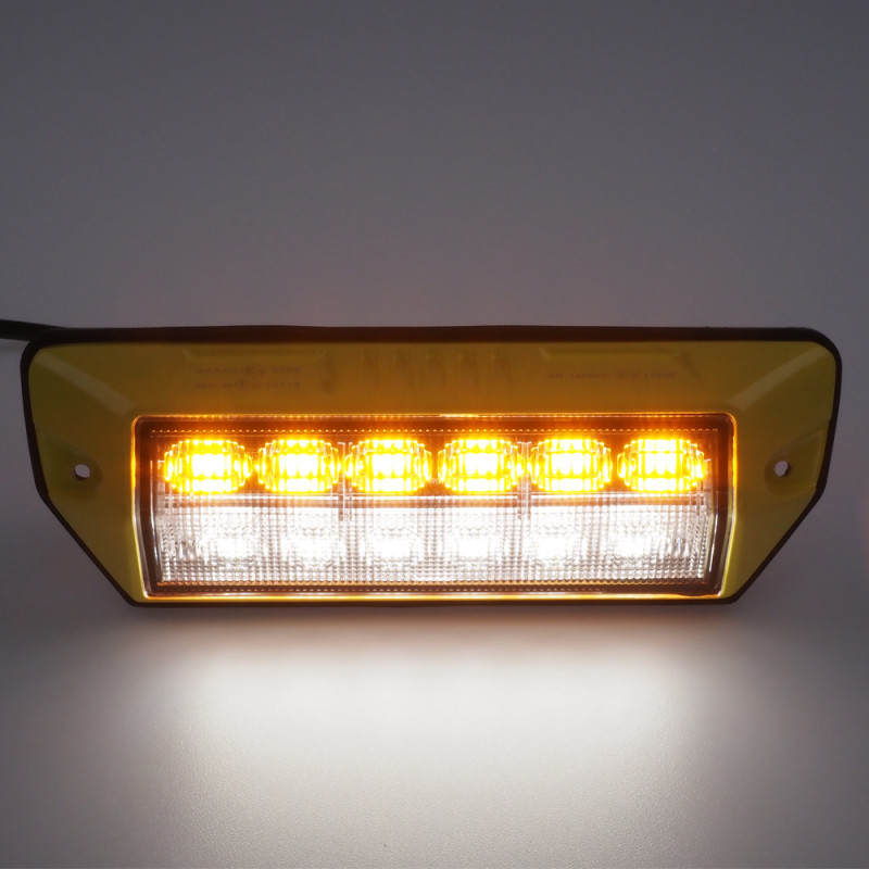 Přídavné oranžové výstražné LED světlo s bilým pracovním světlem pro externí povrchovou montáž.