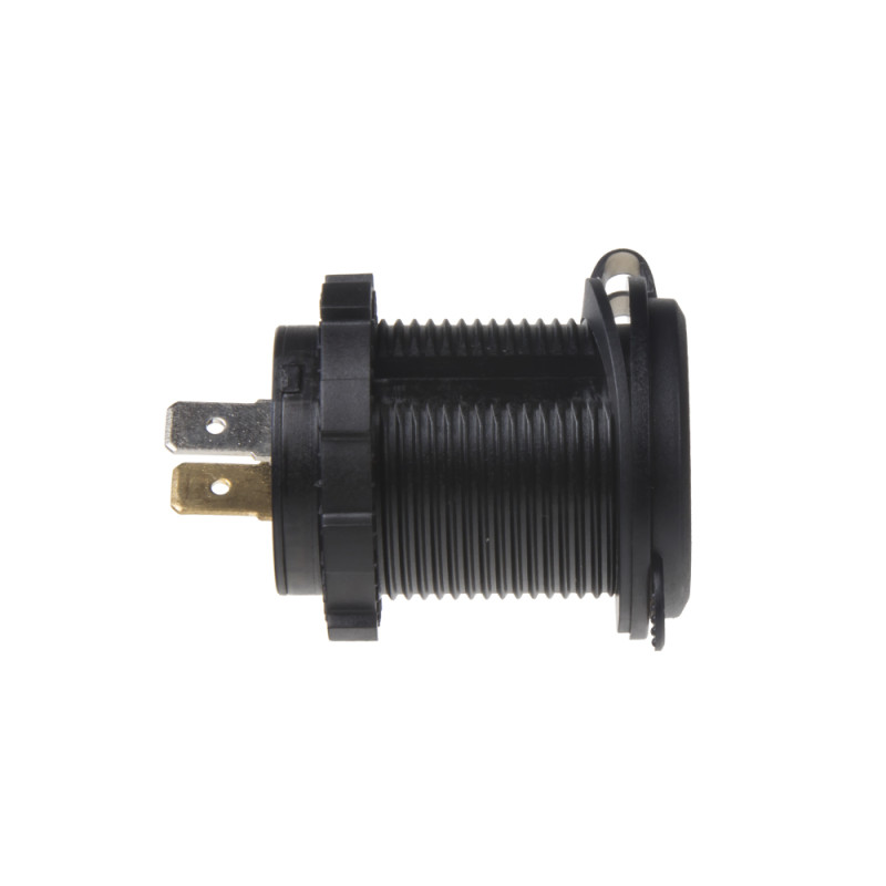 2x USB nabíječka s voltmetrem, hliníková do panelu, s krytkou proti prachu a vlhkosti, modrá.