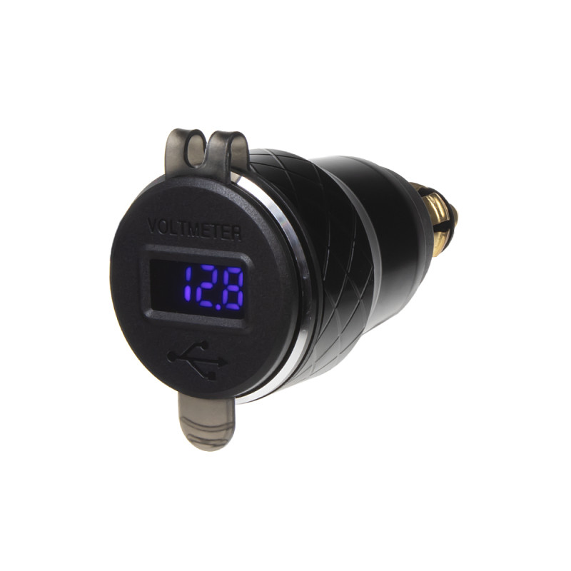 2x USB nabíječka s voltmetrem do panelu, s krytkou proti prachu a vlhkosti, modrý LED displej.