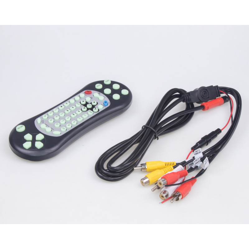 Obsah balení: Monitor, držák s přísavkou + podložka, napájecí kabel s CL, kabel pro připojení kamery (2,5mm Jack/RCA) délka cca 20cm, AUX kabel 3,5mm / 3,5 mm.