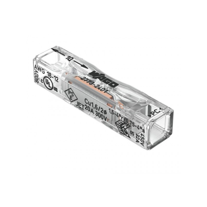 ► WAGO svorka pre rýchle spájanie 2 vodičov (lanko aj drôt)► Prierez spájaného vodiča: 0.2...2,5mm2► Menovité napätie: 450V► Max. prevádzková teplota: 110 ° C► Zaťaženie: Max 32A► Farba: Priesvitná