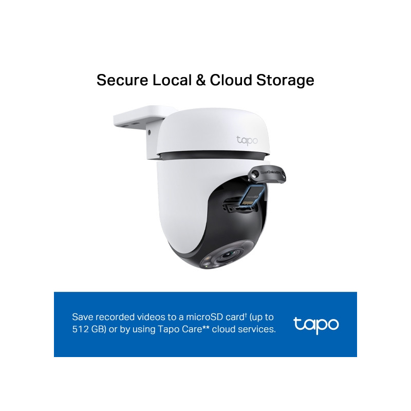 ► Lokálne a cloudové úložisko - Uložte zaznamenané videá na kartu microSD ( až 512 GB ) alebo pomocou cloudových služieb Tapo Care