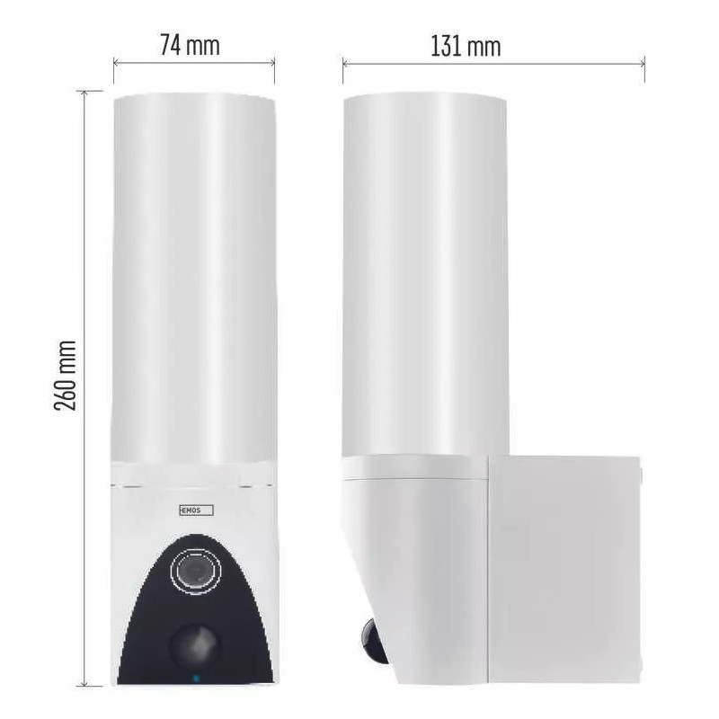 ► Kamera má širokouhlý objektív, rozlíšenie Full HD a nočné videnie a získate dokonalý a nestranný prehľad o dianí v jej okolí. Po aktivácii vás prostredníctvom mobilného telefónu upozorní na zaznamenaný pohyb v zornom poli objektívu a nahráva na kartu SD alebo do cloudového úložiska► Automatické ukladanie obrázkov: áno► Montáž: na stenu + na postavenie► Napájanie kamery: AC 100-240 V► Nastavenie oblasti detekcie: áno► Nočné videnie: áno► Maximálny dosvit nočného videnia: 10 metrov► Snímací prvok kamery: 1/2,9‘‘ 2 Megapixel CMOS► Farba: biela► Rozmery: šírka 74 mm, hĺbka 131 mm, výška 260 mm► Uhol záberu kamery: 130°► Krytie: IP65► Rozlíšenie kamery: 1 920 × 1 080► Detekcia pohybu: áno► Detekcia zvuku: nie► IR CUT: nie► Siréna: nie► Podporované OS: Android, iOS► Kompatibilita: EMOS GoSmart, TUYA, LIDL, Smartlife, otvorený systém► Protokol: Wi-Fi► Ukladanie na kartu SD► Ukladanie na cloud► Prenosová frekvencia: 2,4 GHz WIFI (IEEE802.11b/g/n)► Inštalačný materiál: áno► Ochrana proti odcudzeniu: blokované aplikáciou► Ovládanie hlasovými asistentmi► Hlasová komunikácia: obojsmerný► Notifikácie do mobilnej aplikácie► Jazyky aplikácie: EN, CZ, SK, PL, DE, HU, SI, FR, + 60 ďalších jazykov► Sledovanie pohybu (tracking)► Podpora ONVIF► Funkcia WebRTC: áno► Prídavné LED svetlo► Motorizované otáčanie► Uhol detekcie pohybu: 120°► Dosah detekcie pohybu: 10 metrov► Obsah balenia: 1× jednotka kamery, 1× sada skrutiek, 1× príručka