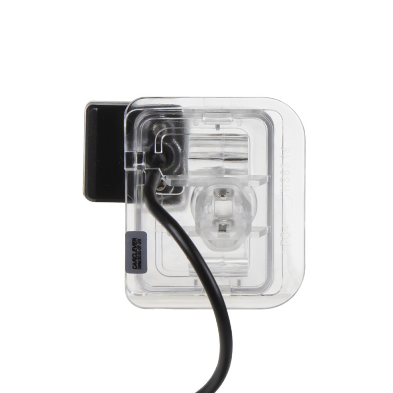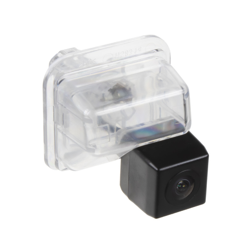 Barevná kamera do osvětlení pro SPZ. Je určena pro zabudování do osvětlení nad zadní registrační značku vozů Toyota. Vhodné např. pro kombinaci s monitorem, nebo s adaptéry mi-xxx pro připojení k originální navigaci. Montáž: Vyjmete 1 lampičku nad zadní SPZ a místo ní vložíte do originálního otvoru tuto kameru, která zároveň nahradí původní sklíčko osvětlení SPZ. Kamera zároveň zobrazuje pomocné trajektorie pro parkování.