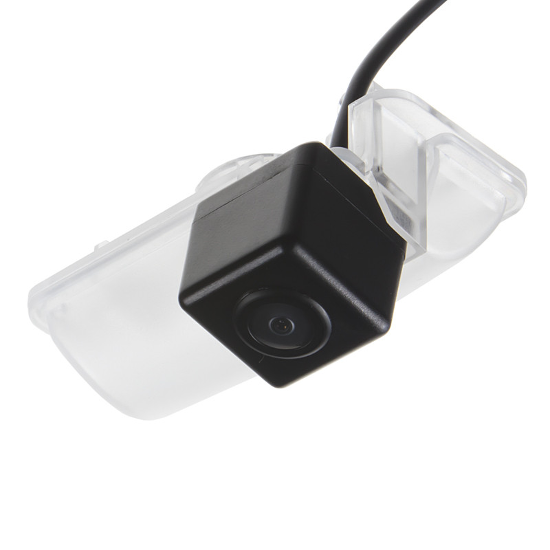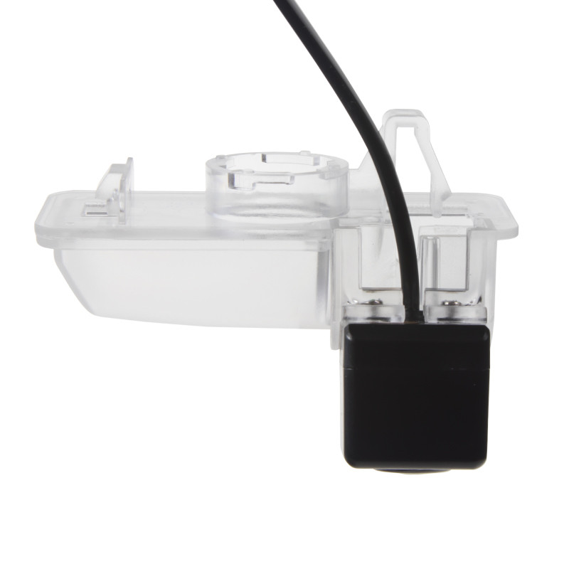 Barevná kamera s LED osvětlením pro SPZ. Je určena pro zabudování do osvětlení nad zadní registrační značku. Vhodné např. pro kombinaci s monitorem, nebo s adaptéry mi-xxx pro připojení k originální navigaci. Montáž: Vyjmete 1 lampičku nad zadní SPZ a místo ní vložíte do originálního otvoru tuto kameru, která zároveň nahradí původní sklíčko osvělení SPZ.