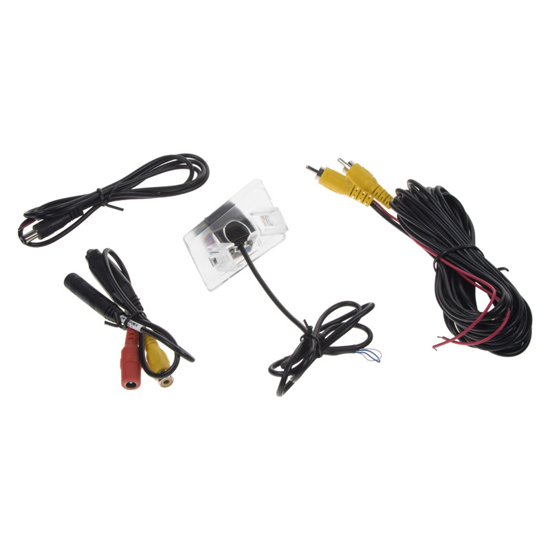 Barevná kamera do osvětlení pro SPZ. Je určena pro zabudování do osvětlení nad zadní registrační značku vozů Toyota. Vhodné např. pro kombinaci s monitorem, nebo s adaptéry mi-xxx pro připojení k originální navigaci. Montáž: Vyjmete 1 lampičku nad zadní SPZ a místo ní vložíte do originálního otvoru tuto kameru, která zároveň nahradí původní sklíčko osvětlení SPZ. Kamera zároveň zobrazuje pomocné trajektorie pro parkování.