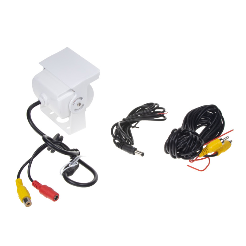 CVBS kamera s IR světlem v bílé barvě, vnější, určená pro montáž především na nákladní vozy, autobusy, karavany či dodávky.