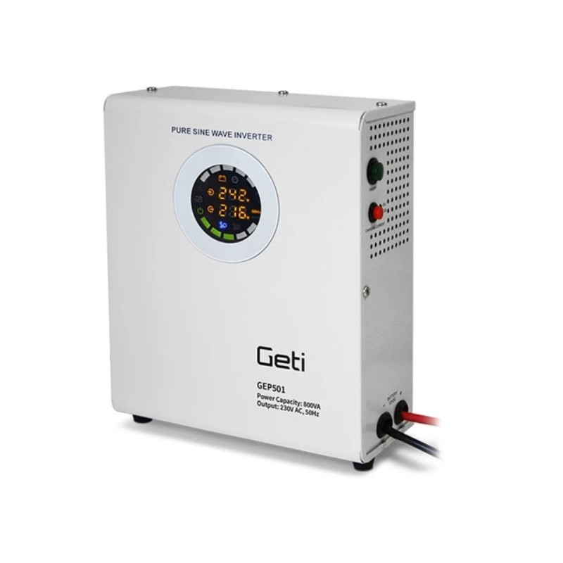 ► Núdzový napájací systém GETI (EPS - Emergency Power Supply) je zariadenie, ktoré zaisťuje zdroj striedavého napätia v prípade výpadku elektrickej siete. Núdzový napájací systém môžete použiť ako záložný zdroj pre rôzne čerpadlá, automatické kotly, podávače, núdzové osvetlenie, kamerové systémy a ďalšie. V normálnom režime je pripojené zariadenie napájané priamo zo siete a pri výpadku sa núdzový napájací systém automaticky prepne do režimu meniča. Pripojené zariadenie je potom napájané z pripojenej batérie. V prípade, že nedôjde k obnoveniu dodávok elektrickej energie, môže dôjsť k vypnutiu núdzového napájacieho systému v momente, keď napätie pripojenej batérie klesne na hodnotu okolo 10,2V ± 0,3V. Je to z dôvodu ochrany batérie pred hlbokým vybitím a následným poškodením. EPS je vybavený prehľadným farebným displejom, meničom napätia s čistým Sinusom založeným na toroidnom transformátore a rýchlym 32-bit procesorom