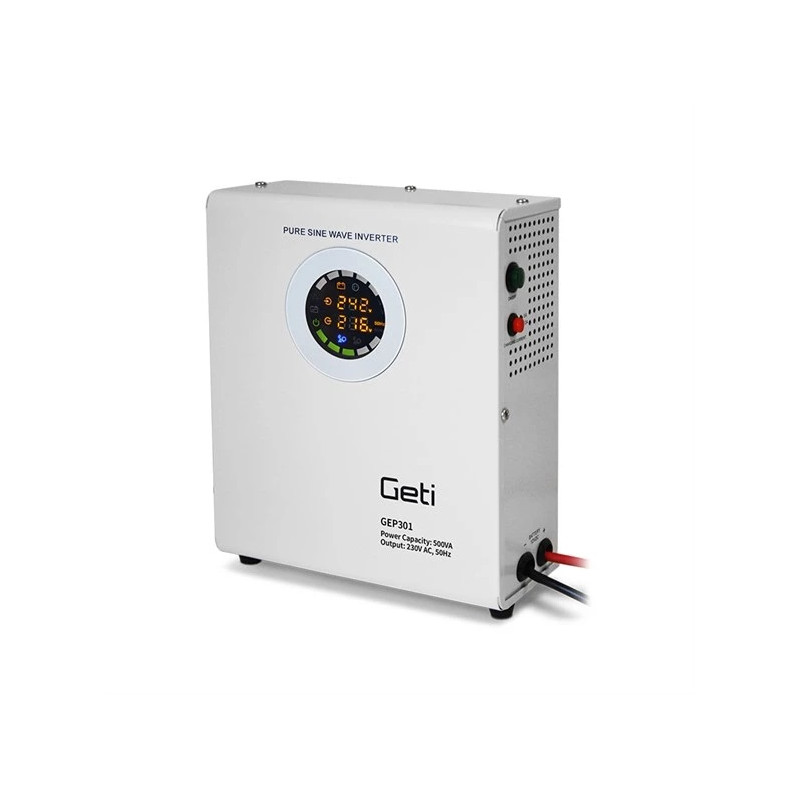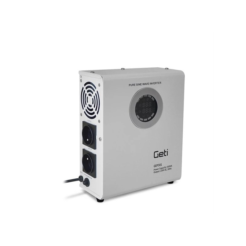 ► Núdzový napájací systém GETI (EPS - Emergency Power Supply) je zariadenie, ktoré zaisťuje zdroj striedavého napätia v prípade výpadku elektrickej siete. Núdzový napájací systém môžete použiť ako záložný zdroj pre rôzne čerpadlá, automatické kotly, podávače, núdzové osvetlenie, kamerové systémy a ďalšie. V normálnom režime je pripojené zariadenie napájané priamo zo siete a pri výpadku sa núdzový napájací systém automaticky prepne do režimu meniča. Pripojené zariadenie je potom napájané z pripojenej batérie. V prípade, že nedôjde k obnoveniu dodávok elektrickej energie, môže dôjsť k vypnutiu núdzového napájacieho systému v momente, keď napätie pripojenej batérie klesne na hodnotu okolo 10,2V ± 0,3V. Je to z dôvodu ochrany batérie pred hlbokým vybitím a následným poškodením. EPS je vybavený prehľadným farebným displejom, meničom napätia s čistým Sinusom založeným na toroidnom transformátore a rýchlym 32-bit procesorom.