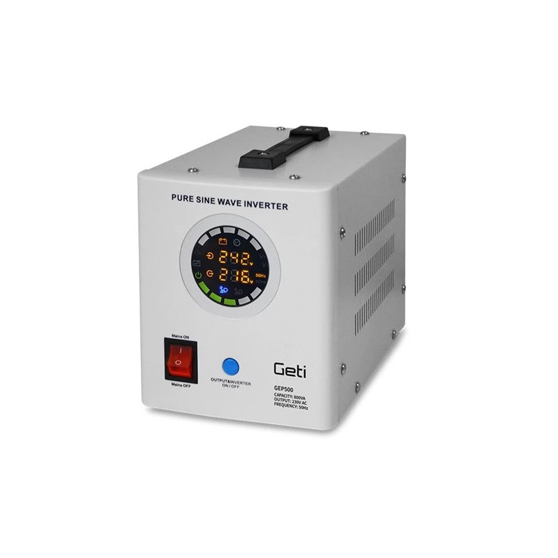 ► Núdzový napájací systém GETI (EPS - Emergency Power Supply) s čistým sínusovým výstupným signálom je zariadenie, ktoré zaisťuje zdroj striedavého napätia v prípade výpadku elektrickej siete. Núdzový napájací systém môžete použiť ako záložný zdroj pre rôzne čerpadlá, automatické kotly, podávače, núdzové osvetlenie, kamerové systémy a ďalšie. V normálnom režime je pripojené zariadenie napájané priamo zo siete a pri výpadku sa núdzový napájací systém automaticky prepne do režimu meniča. Pripojené zariadenie je potom napájané z pripojenej batérie. V prípade, že nedôjde k obnoveniu dodávok elektrickej energie, môže dôjsť k vypnutiu núdzového napájacieho systému v momente, keď napätie pripojenej batérie klesne na hodnotu okolo 10,2V ± 0,3V. Je to z dôvodu ochrany batérie pred hlbokým vybitím a následným poškodením. EPS je vybavený prehľadným farebným displejom, meničom napätia s čistým Sinusom založeným na toroidnom transformátore a rýchlym 32-bit procesorom