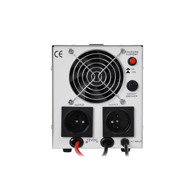 ► Zariadenie môže pracovať v troch režimoch:1. Núdzový zdroj napájania s funkciou nabíjania - mení jednosmerné napätie 12V z externej batérie na 230V AC a a zároveň dobíja externú batériu.2. Ako usmerňovač - nabíja externú batériu (zariadenie musí byť pripojené k napájaniu 230V AC )3. Ako menič - mení jednosmerné napätie 12 V DC z externej batérie na napätie 230V ACPrístroj je vybavený jasným a priehľadným LED displejom s ukazovateľmi aktuálneho stavu - Napájania- Vstupného napätia- Výstupného napätia a frekvencie- Úroveň zaťaženia- Úroveň nabitia batérie