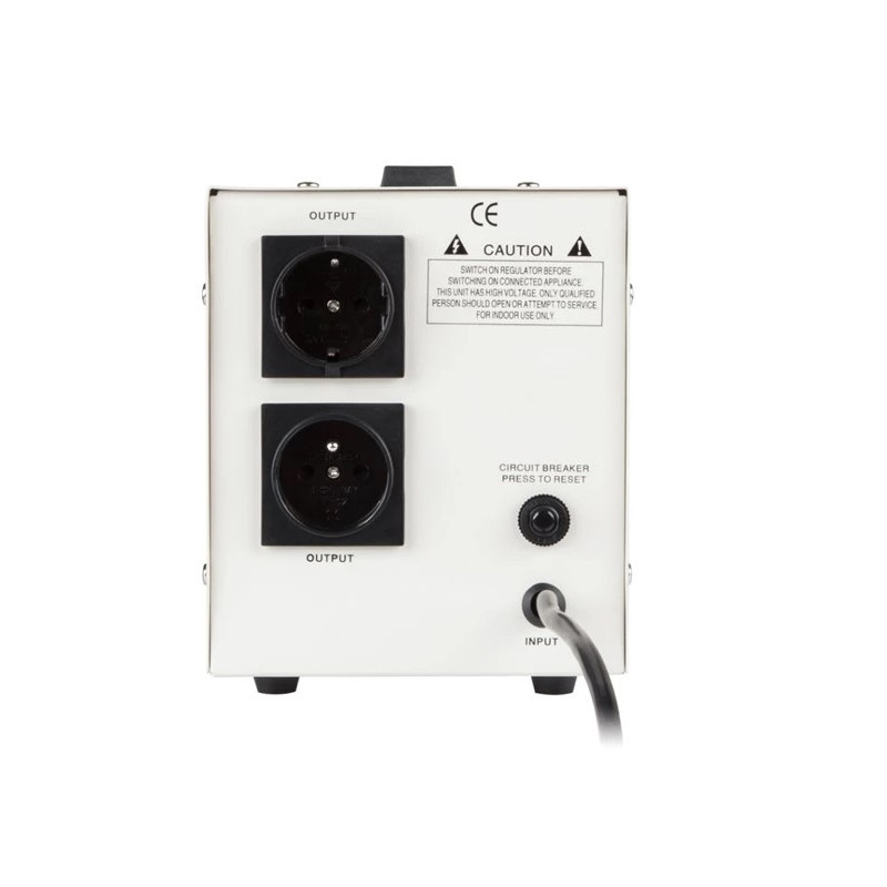 ► Model: URZ3412 - 1000 VA► Vstup: Rozsah napätia 150 - 270 V AC► Vstup: Frekvencia 50/60 Hz► Výstup: Napätie 230 V► Výstup: Frekvencia 50/60 Hz► Výstup: Presnosť ±5%► Výstupné napätie: Jednofázové► CRGO toroidný transformátor 98% účinnosť► Ochrana: prepätie, podpätie, preťaženie, prehriatie, skrat► Oneskorenie: Bez oneskorenia/oneskorenia (180/6 sekúnd)► Prevádzková teplota: 0~40°C► Relatívna vlhkosť: 10% ~ 90%► Skladovanie teplota: -15~ 45°C► Rozmery: 23,5 x 14,5 x 17 cm