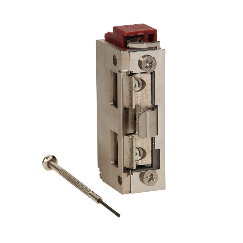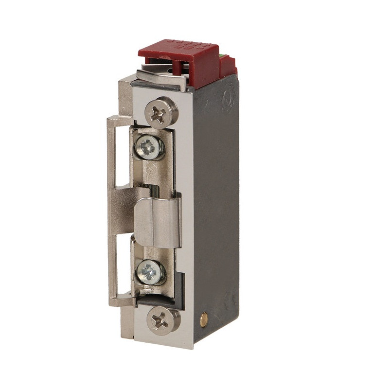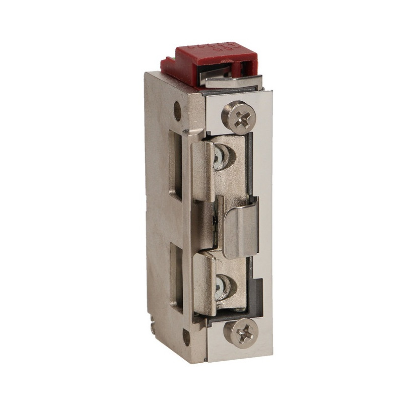 ► Môže pracovať s inštaláciou vrátnych a videovrátnikov na predné dvere rodinných a rodinných domov vyrobených zo zliatiny Zamak, ktorá je extrémne odolná a odolná voči korózii. Dá sa namontovať na vonkajšiu stranu štandardného čelného panelu Symetrický dizajn a malé rozmery umožňujú použitie v systémoch posuvných brán, úzkych priestoroch a zárubniach Vybavené bezpečným, patentovaným a nastaviteľným mechanizmom držiaka západky. Elektrický zámok bol vybavený cievkou nízkeho prúdu so širokým rozsahom napätia, spotreba prúdu je 280 mA pre 12 V jednosmerný prúd a 250 mA pre 12 V striedavý prúd