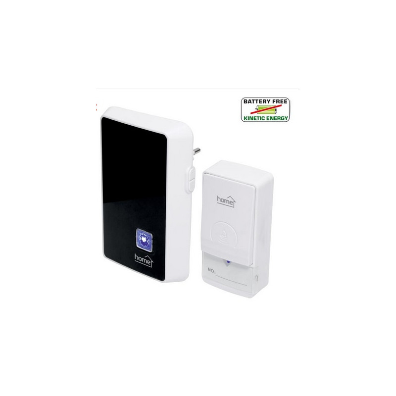 ► Tlačítko bezdrôtového zvončeku funguje na princípe dynama. Pre napájanie časti s tlačítkom nie je potrebný žiadny zdroj elektrického prúdu. Prúd potrebný pre prevádzku si tlačítková časť sama vyrobí pri stlačení tlačítka pomocou dynama. Vďaka inovatívnym technológiám výrobok pre svoju prevádzku nepotrebuje batériu a bezdrôtová technológia prenosu signálu zase nepotrebuje žiadne vodiče