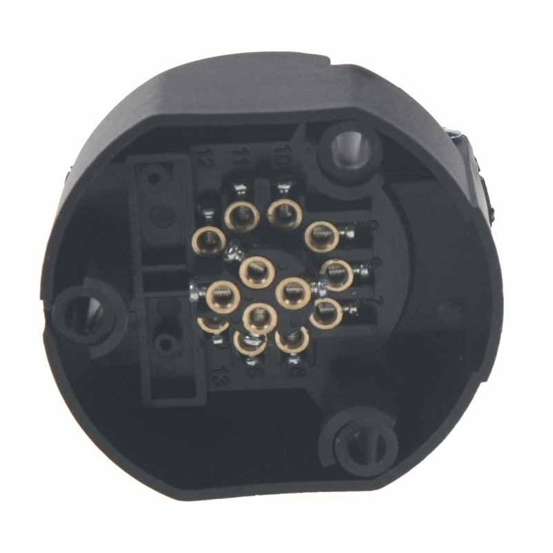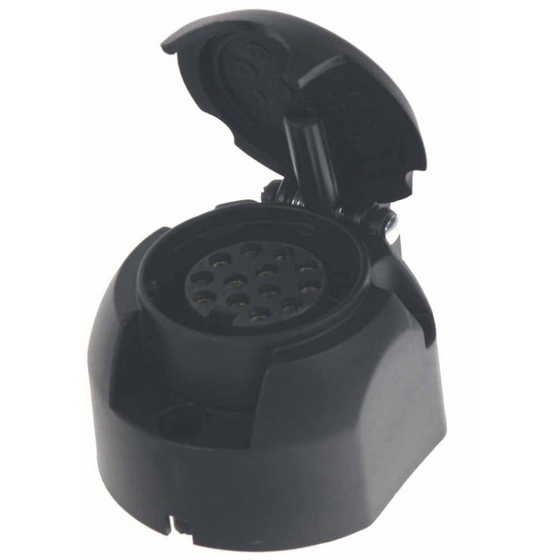 ► Zásuvka na pripojenie prívesného vozíka k automobilu s 13-pólovou zásuvkou, ktoré sa používajú u nových ťažných zariadení, a nových prívesov