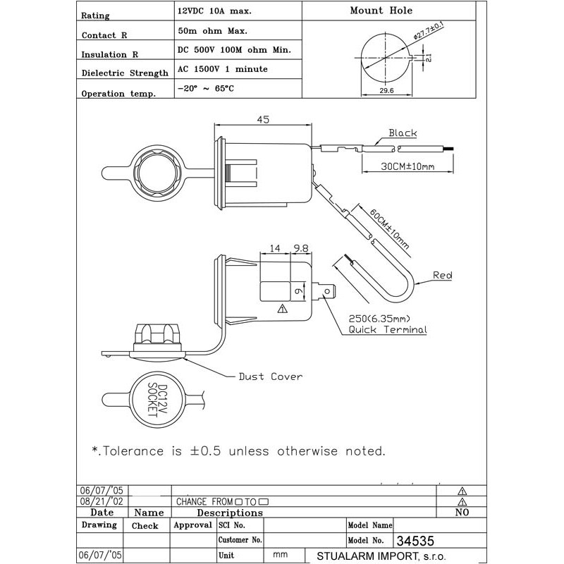 ► Upozornenie: Buďte opatrní pri použití akéhokoľvek cigaretového zapaľovača alebo zásuvky. Neopatrnosť alebo nedbanlivosť pri používaní zapaľovača v aute môže spôsobiť popáleniny. Z tohto dôvodu nikdy nenechávajte deti v aute bez dozoru, ak je elektrická zásuvka zapaľovača v prevádzke. Pri zapojení vo vozidle s 24V napätím nemožno v zásuvke použiť 12V zariadenia!*Návod na použitie: Čierny káblik pripojte na kostru a červený na prívod od autobatérie. Zásuvku priskrutkujte skrutkami o panel v automobile. Pri opustení auta odpojte prístroj zo zásuvky!