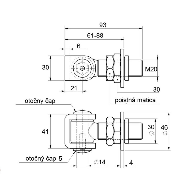 Záves nastaviteľný_Nastaviteľný_S navariteľnou maticou_M20