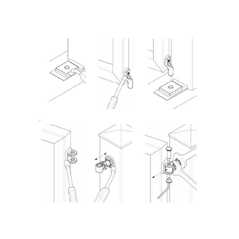 Pri montáži je možné krídlo brány nastaviť pomocou matice /30mm/ nalisovanej na podložke, ktorá je prizváraná o nosný stĺp. Následne sa zaistí kontramaticou /24mm/. Veľkou výhodou je montáž a demontáž krídla cez otočný čap zaistený zo spodu skrutkou /imbusový kľúč 4mm/.
