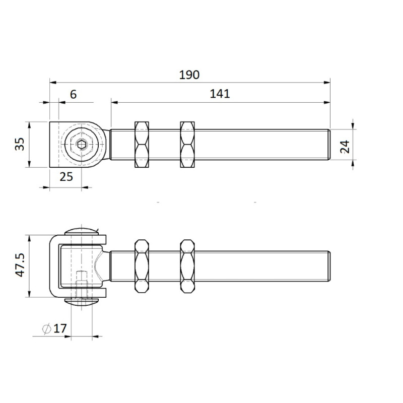 Pri montáži je možné krídlo brány nastaviť pomocou matice /30mm/ nalisovanej na podložke, ktorá je prizváraná o nosný stĺp. Následne sa zaistí kontramaticou /24mm/. Veľkou výhodou je montáž a demontáž krídla cez otočný čap zaistený zo spodu skrutkou /imbusový kľúč 4mm/.